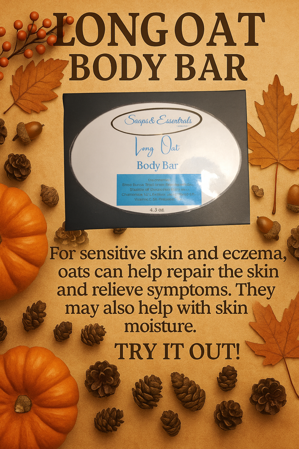 As the weather cools down, your skin deserves a little extra love — and the Long Oat Body Bar from Soaps & Essentials is here to deliver it. Made with natural oatmeal, shea butter, chamomile, and vitamin E, this bar gently cleanses while restoring hydration and softness to dry, sensitive skin. Perfect for soothing irritation, eczema, or seasonal dryness, it forms a comforting moisture barrier that leaves your skin smooth, calm, and refreshed. Don’t wait for winter to take its toll — keep your skin glowing and nourished all season long with the Long Oat Body Bar!